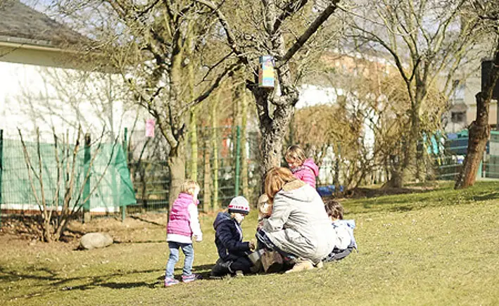 Unser cirka 3.000 m² großes Außengelände bietet jedem Kind Erfolgserlebnisse und Selbstvertrauen. Es ist ein weiterer Bildungsraum zur persönlichen Entwicklung. Hier bieten sich viele Möglichkeiten, die eigenen Grenzen kennenzulernen und zu erweitern. So können Kinder z.B. mit einer „Raus geh–Erlaubnis“ das Außengelände auch ohne direkte Aufsicht einer pädagogischen Fachkraft nutzen.