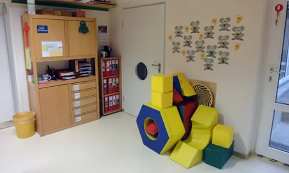 Im September 2015 haben unsere Mini-Mäuse ihr neues Domizil bezogen. Auf 65 qm können die Kleinsten unserer Kinder spielen und toben und anschließend ein erholsames Nickerchen im ebenfalls neuen Schlafraum halten, der direkt an den Mini-Mäuse-Raum angrenzt. Neben umfangreichen Renovierungsarbeiten, wurde extra ein neuer Boden aus Kautschuk verlegt, der durch seine natürliche Dämmung für warme Füße sorgt.